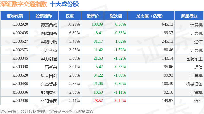 资金流向方面,深证数字交通(970049)指数成份股当日主力资金净流出合计3.69亿元,游资资金净流出合计187.52万元,散户资金净流入合计3.71亿元。成份股资金流向详情见下表: