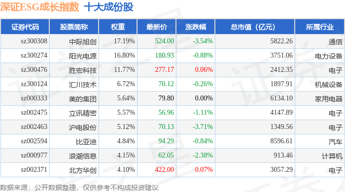资金流向方面,深证ESG成长(970060)指数成份股当日主力资金净流出合计35.74亿元,游资资金净流入合计16.5亿元,散户资金净流入合计19.24亿元。成份股资金流向详情见下表: