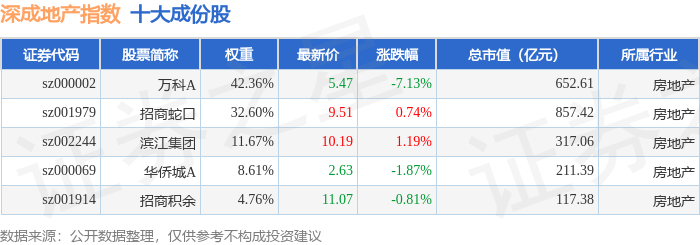 证券之星消息,11月27日,深成地产(971001)指数报收于457.48点,跌2.76%,成交37.45亿元,换手率2.19%。当日该指数成份股中,上涨的有2家,滨江集团以1.19%的涨幅领涨,下跌的有3家,万科A以7.13%的跌幅领跌。