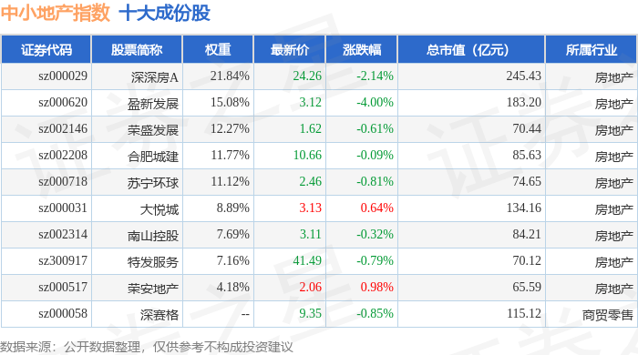 中小地产(971002)指数十大成份股详情如下: