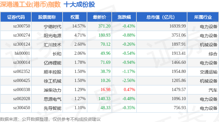 深港通工业(港币)(983018)指数十大成份股详情如下: