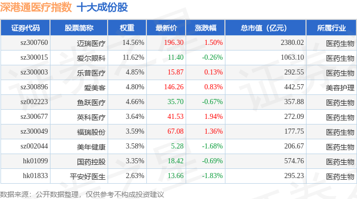 深港通医疗(983035)指数十大成份股详情如下: