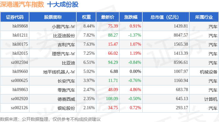 近10日内深港通汽车(983039)指数成份股做了调整,新纳入了1只股票。