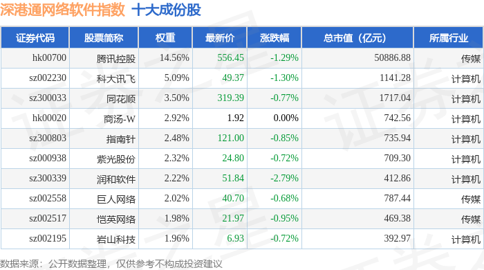 深港通网络软件(983047)指数十大成份股详情如下:
