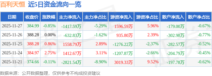 11月27日的资金流向数据方面,主力资金净流出1417.59万元,占总成交额5.29%,游资资金净流入1596.59万元,占总成交额5.96%,散户资金净流出179.0万元,占总成交额0.67%。