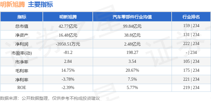 该股主要指标及行业内排名如下: