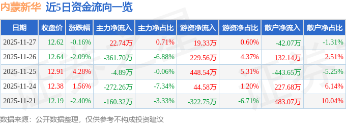 11月27日的资金流向数据方面,主力资金净流入22.74万元,占总成交额0.71%,游资资金净流入19.33万元,占总成交额0.6%,散户资金净流出42.07万元,占总成交额1.31%。