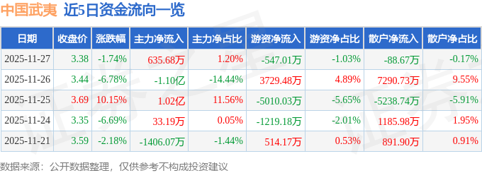 证券之星消息,截至2025年11月27日收盘,中国武夷(000797)报收于3.38元,下跌1.74%,换手率9.95%,成交量156.3万手,成交额5.32亿元。