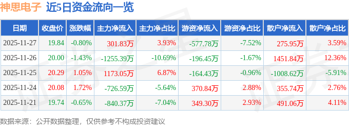 11月27日的资金流向数据方面,主力资金净流入301.83万元,占总成交额3.93%,游资资金净流出577.78万元,占总成交额7.52%,散户资金净流入275.95万元,占总成交额3.59%。