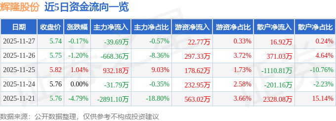 证券之星消息,截至2025年11月27日收盘,辉隆股份(002556)报收于5.74元,下跌0.17%,换手率1.28%,成交量12.09万手,成交额6953.37万元。