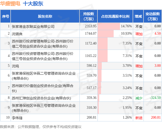 根据华盛锂电2025年三季报公布的十大股东详情如下: