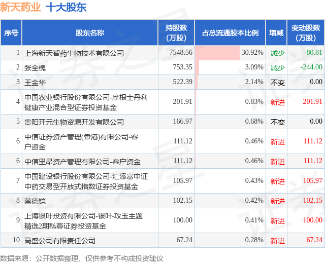 根据新天药业2025年三季报公布的十大股东详情如下: