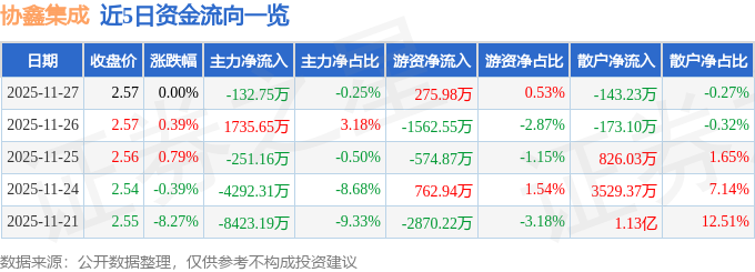 11月27日的资金流向数据方面,主力资金净流出132.75万元,占总成交额0.25%,游资资金净流入275.98万元,占总成交额0.53%,散户资金净流出143.23万元,占总成交额0.27%。