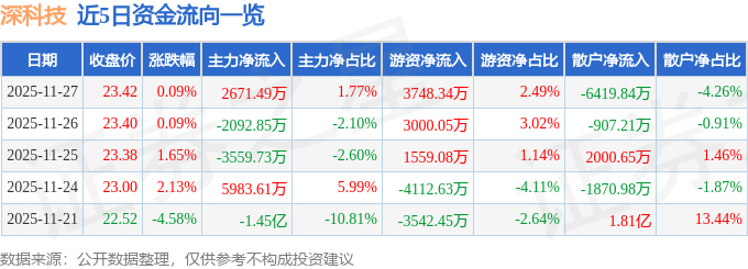 证券之星消息,截至2025年11月27日收盘,深科技(000021)报收于23.42元,上涨0.09%,换手率4.04%,成交量63.47万手,成交额15.08亿元。