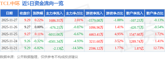 证券之星消息,截至2025年11月27日收盘,TCL中环(002129)报收于9.29元,上涨0.22%,换手率2.23%,成交量89.89万手,成交额8.39亿元。