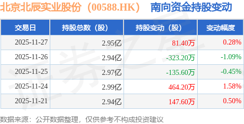 证券之星消息,11月27日南向资金增持81.4万股北京北辰实业股份(00588.HK)。近5个交易日中,获南向资金增持的有3天,累计净增持234.4万股。近20个交易日中,获南向资金增持的有12天,累计净增持492.2万股。截至目前,南向资金持有北京北辰实业股份(00588.HK)2.95亿股,占公司已发行普通股的41.69%。