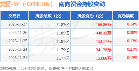 证券之星消息,11月27日南向资金增持166.86万股美团-W(03690.HK)。近5个交易日中,获南向资金增持的有5天,累计净增持1162.33万股。近20个交易日中,获南向资金增持的有14天,累计净增持3195.21万股。截至目前,南向资金持有美团-W(03690.HK)11.87亿股,占公司已发行普通股的19.42%。