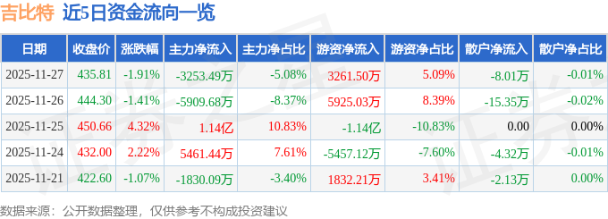 11月27日的资金流向数据方面,主力资金净流出3253.49万元,占总成交额5.08%,游资资金净流入3261.5万元,占总成交额5.09%,散户资金净流出8.01万元,占总成交额0.01%。