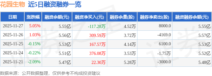 证券之星消息,截至2025年11月27日收盘,花园生物(300401)报收于14.36元,上涨5.05%,换手率5.68%,成交量30.35万手,成交额4.31亿元。
