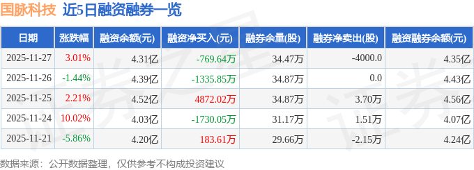 证券之星消息,截至2025年11月27日收盘,国脉科技(002093)报收于12.65元,上涨3.01%,换手率8.63%,成交量87.0万手,成交额10.88亿元。