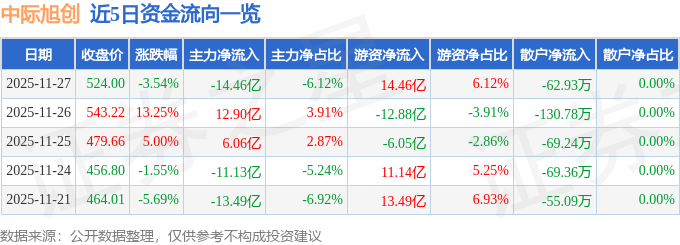 证券之星消息,截至2025年11月27日收盘,中际旭创(300308)报收于524.0元,下跌3.54%,换手率3.96%,成交量43.73万手,成交额236.41亿元。