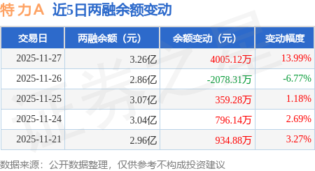 证券之星消息,11月27日,特 力A(000025)融资买入9706.26万元,融资偿还5712.31万元,融资净买入3993.96万元,融资余额3.25亿元,近20个交易日中有11个交易日出现融资净买入。