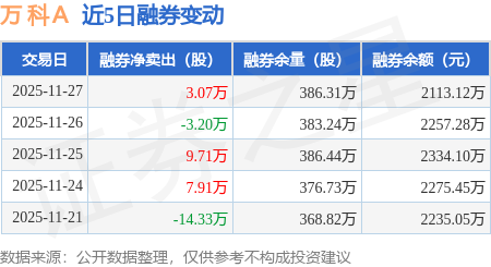 证券之星消息,11月27日,万 科A(000002)融资买入2.74亿元,融资偿还2.43亿元,融资净买入3048.05万元,融资余额33.9亿元。