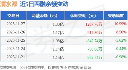 证券之星消息,11月27日,清水源(300437)融资买入7594.15万元,融资偿还6306.39万元,融资净买入1287.76万元,融资余额1.3亿元,近20个交易日中有13个交易日出现融资净买入。