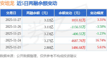 证券之星消息,11月27日,安培龙(301413)融资买入5705.48万元,融资偿还4673.66万元,融资净买入1031.82万元,融资余额3.22亿元。