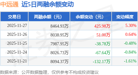 证券之星消息,11月27日,中远通(301516)融资买入833.88万元,融资偿还407.9万元,融资净买入425.98万元,融资余额8464.93万元。