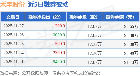 证券之星消息,11月27日,禾丰股份(603609)融资买入447.49万元,融资偿还229.74万元,融资净买入217.75万元,融资余额1.55亿元,近3个交易日已连续净买入累计776.62万元,近20个交易日中有15个交易日出现融资净买入。