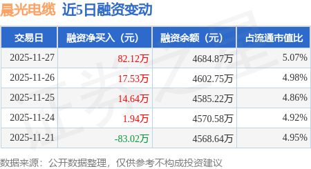证券之星消息,11月27日,晨光电缆(920639)融资买入107.08万元,融资偿还24.95万元,融资净买入82.12万元,融资余额4684.87万元,近3个交易日已连续净买入累计114.29万元,近20个交易日中有15个交易日出现融资净买入。