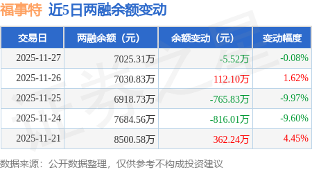 融资融券余额7025.31万元,较昨日下滑0.08%。
