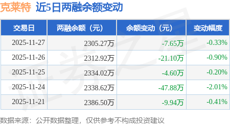 证券之星消息,11月27日,克莱特(920689)融资买入287.74万元,融资偿还295.38万元,融资净卖出7.65万元,融资余额2305.27万元。