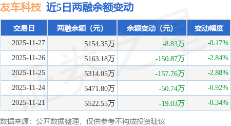 证券之星消息,11月27日,友车科技(688479)融资买入144.5万元,融资偿还153.33万元,融资净卖出8.83万元,融资余额5154.35万元。