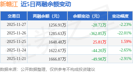 证券之星消息,11月27日,新赣江(920367)融资买入291.58万元,融资偿还320.3万元,融资净卖出28.72万元,融资余额1256.91万元。
