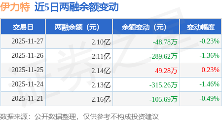证券之星消息,11月27日,伊力特(600197)融资买入346.23万元,融资偿还396.66万元,融资净卖出50.43万元,融资余额2.09亿元。