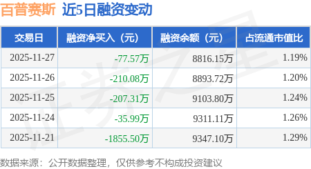 证券之星消息,11月27日,百普赛斯(301080)融资买入293.47万元,融资偿还371.04万元,融资净卖出77.57万元,融资余额8816.15万元。