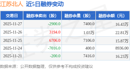 证券之星消息,11月27日,江苏北人(688218)融资买入341.34万元,融资偿还432.49万元,融资净卖出91.15万元,融资余额1.85亿元。