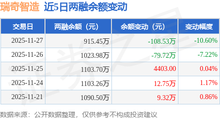 证券之星消息,11月27日,瑞奇智造(920781)融资买入16.46万元,融资偿还124.99万元,融资净卖出108.53万元,融资余额915.45万元,近20个交易日中有11个交易日出现融资净买入。