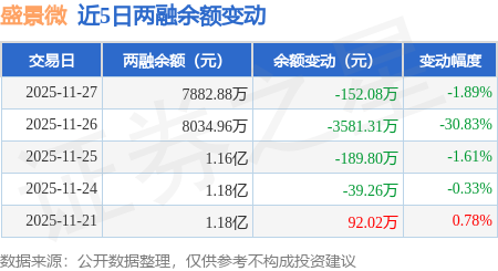 证券之星消息,11月27日,盛景微(603375)融资买入1806.77万元,融资偿还1958.92万元,融资净卖出152.15万元,融资余额7877.69万元。
