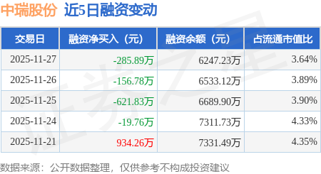 证券之星消息,11月27日,中瑞股份(301587)融资买入251.52万元,融资偿还537.41万元,融资净卖出285.89万元,融资余额6247.23万元。