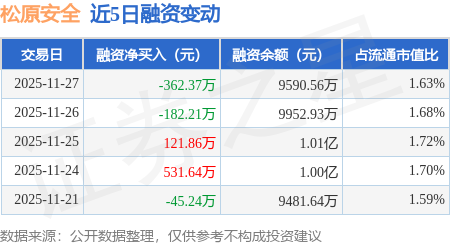 证券之星消息,11月27日,松原安全(300893)融资买入529.32万元,融资偿还891.68万元,融资净卖出362.37万元,融资余额9590.56万元。