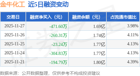 证券之星消息,11月27日,金牛化工(600722)融资买入138.7万元,融资偿还610.3万元,融资净卖出471.6万元,融资余额1.69亿元。