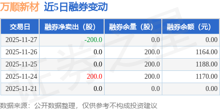 证券之星消息,11月27日,万顺新材(300057)融资买入571.04万元,融资偿还1298.64万元,融资净卖出727.6万元,融资余额2.3亿元。
