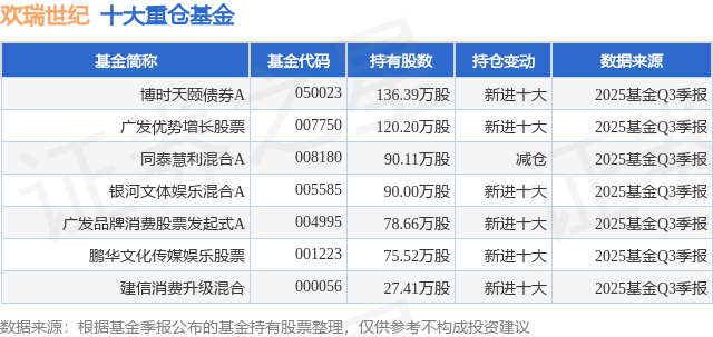 重仓欢瑞世纪的公募基金请见下表: