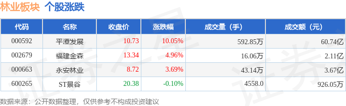 证券之星消息,11月28日林业板块较上一交易日上涨7.87%,平潭发展领涨。当日上证指数报收于3888.6,上涨0.34%。深证成指报收于12984.08,上涨0.85%。林业板块个股涨跌见下表: