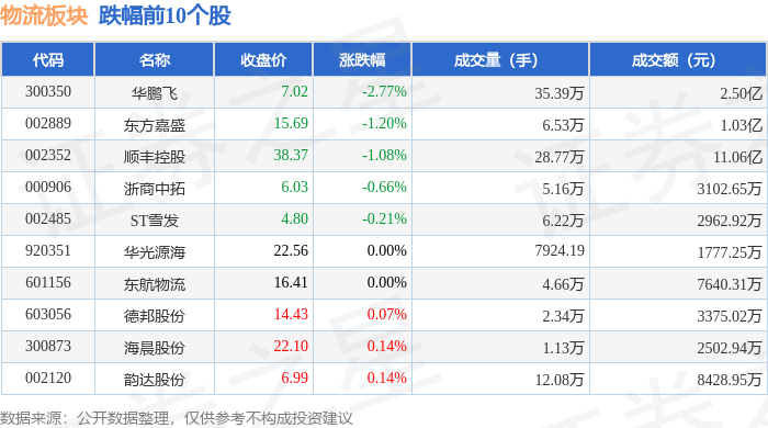 从资金流向上来看,当日物流板块主力资金净流出1.09亿元,游资资金净流出180.56万元,散户资金净流入1.11亿元。物流板块个股资金流向见下表: