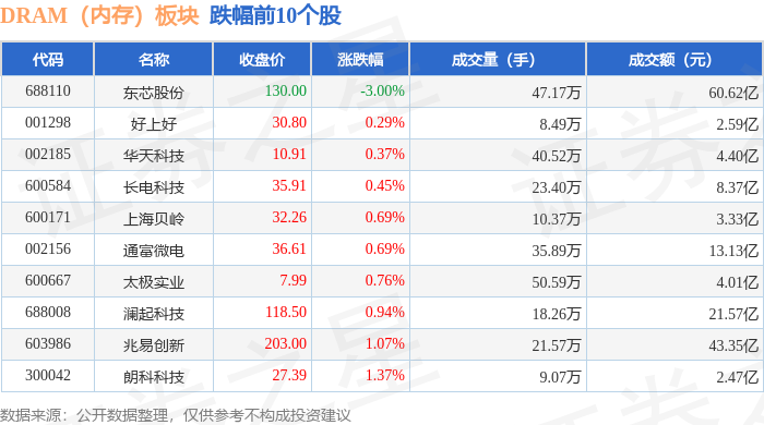 证券之星消息,11月28日DRAM(内存)板块较上一交易日上涨1.91%,兴森科技领涨。当日上证指数报收于3888.6,上涨0.34%。深证成指报收于12984.08,上涨0.85%。DRAM(内存)板块个股涨跌见下表: