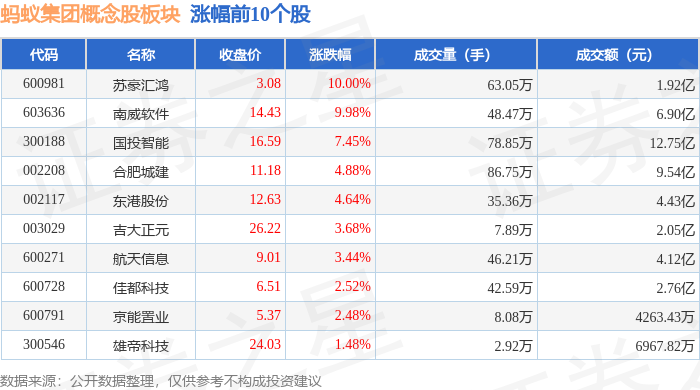 从资金流向上来看,当日蚂蚁集团概念股板块主力资金净流入1949.24万元,游资资金净流出1.31亿元,散户资金净流入1.12亿元。蚂蚁集团概念股板块个股资金流向见下表: